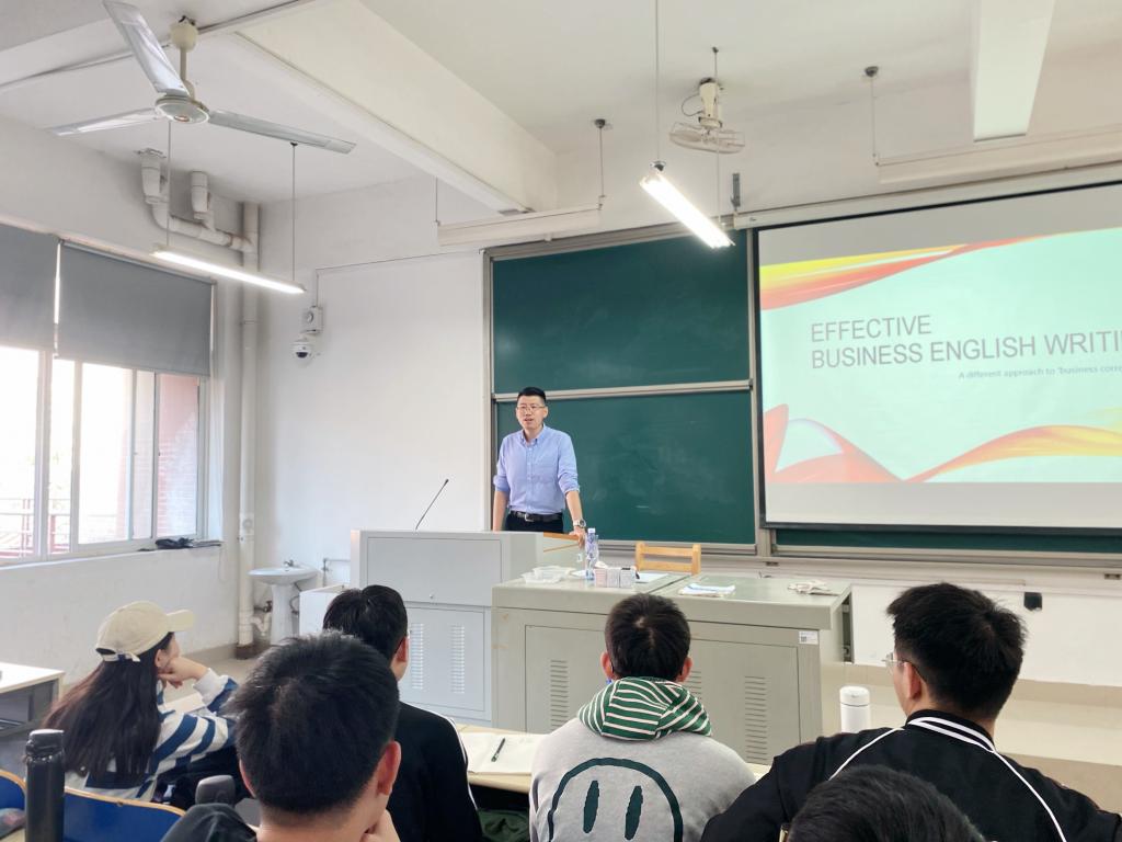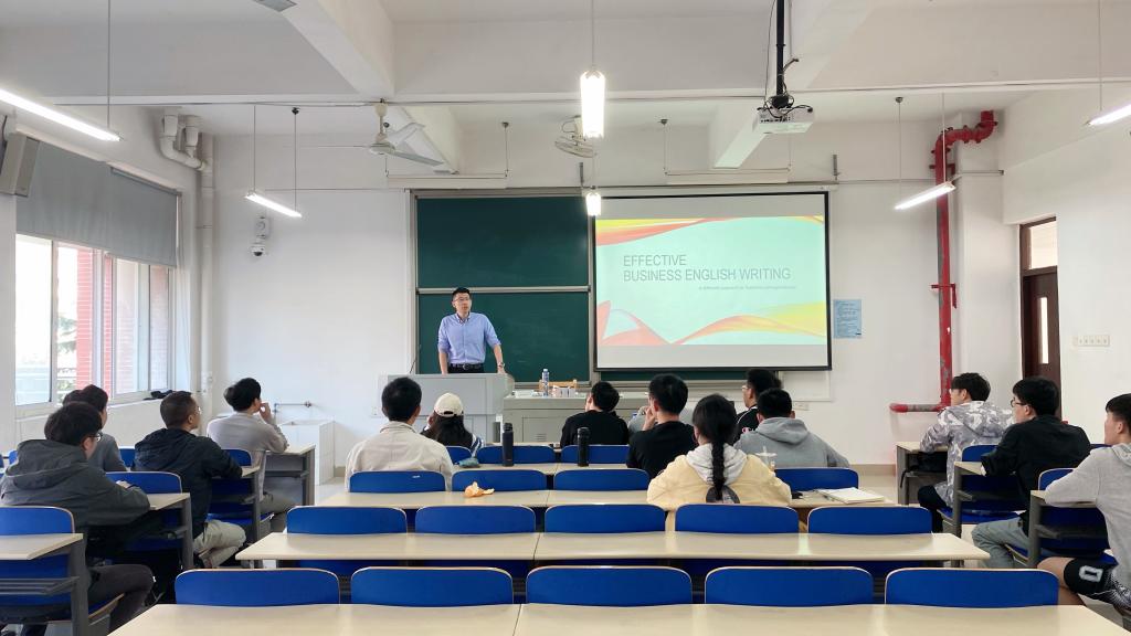 2020年11月10日14:00,三一集团与XK星空联培国际班第二次培训课程在工一B211举行。本次课程由三一集团泵送事业部国际营销公司国际营销管理经理梁贺新经理主讲,主题为“商务英语(商务信函)”,国际班十八名学员参与了此次培训。