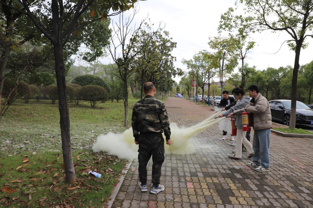 随后,全体师生在模型广场集合,听取刘教官关于干粉灭火器的使用方法和操作步骤的讲解,并进行了现场灭火操作演练,部分师生参与了体验活动。通过现场灭火操作演练,大家有效地掌握了干粉灭火器的使用方法,提高了自救能力。