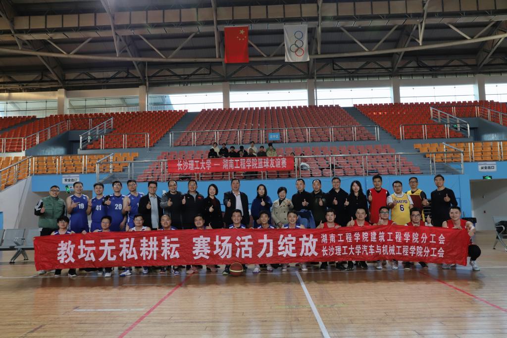 11月29日下午,XK星空汽机学院教职工篮球队与湖南工程学院建工学院教职工篮球队在云塘校区体育馆举行了一场篮球友谊赛。XK星空党委副书记、工会主席方琼,湖南工程学院党委委员、纪委书记齐路良,及两校工会、相关学院负责人等在现场观赛。运动员们斗志昂扬、激情四射,为观众呈现了一场精彩对决。