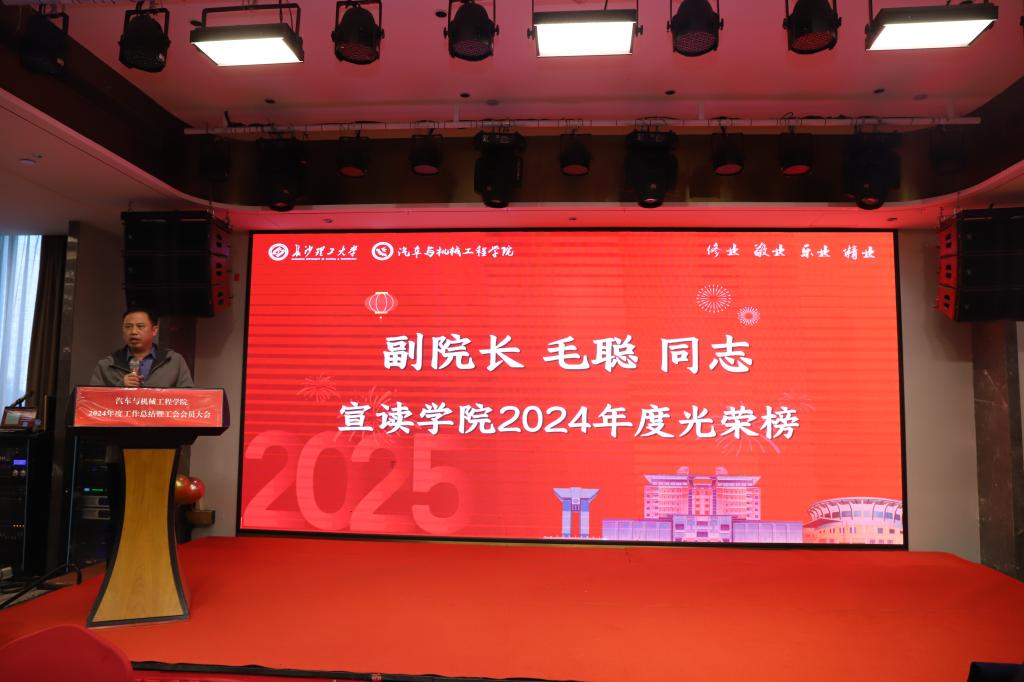 20251月16日下午,汽车与机械工程学院召开2024年度总结暨工会会员会。学院全体教职工出席了会议,图书馆馆长杜荣华作为为特邀嘉宾参会。大会由学院党委副书记兼副院长周小杰主持