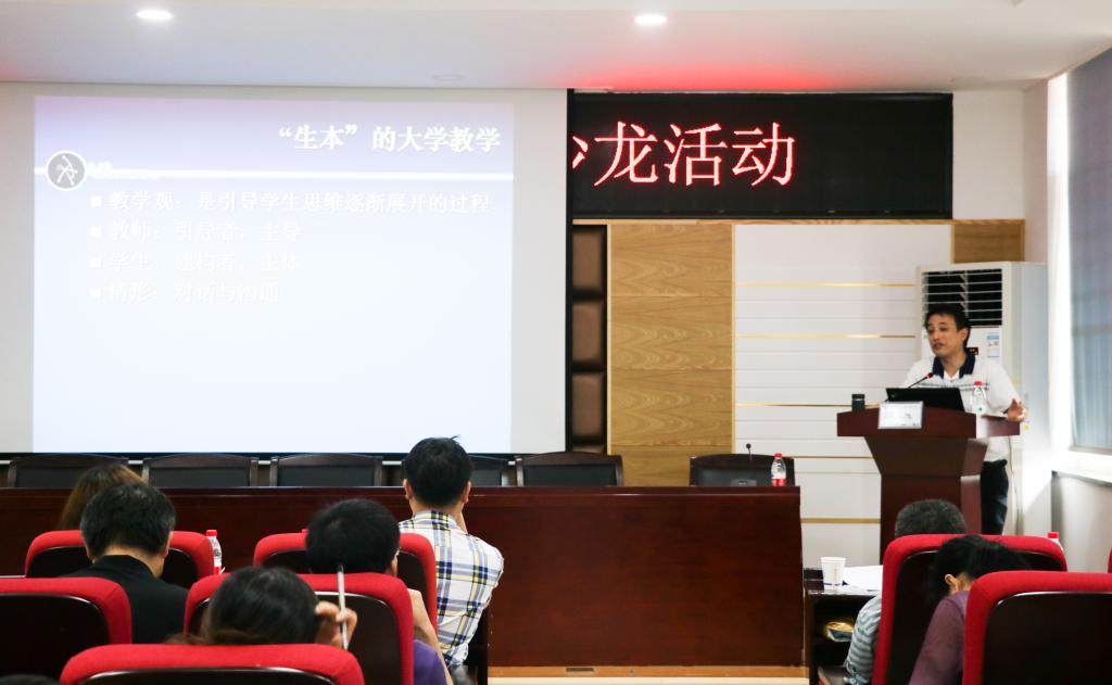 基于“生本”的教学之道,刘旭教授首先提出了当前教育的普遍现象:教师讲、学生记,总结了这种“给予观”教学模式的不足,使得大学成为一个没有批判性、没有灵气、没有创造性的堡垒。针对这种现象,刘旭教授向大家提出了几点辩思:我们为了什么而教?为了“所为”应当如何教?“所为”是否真正实现的标准是什么?总结教育一切以学生的发展为主的内涵:教学是为了学生的发展而教,教学过程中应针对学生的发展规律,实现教学目标的根本标准是学生是否得到了发展。