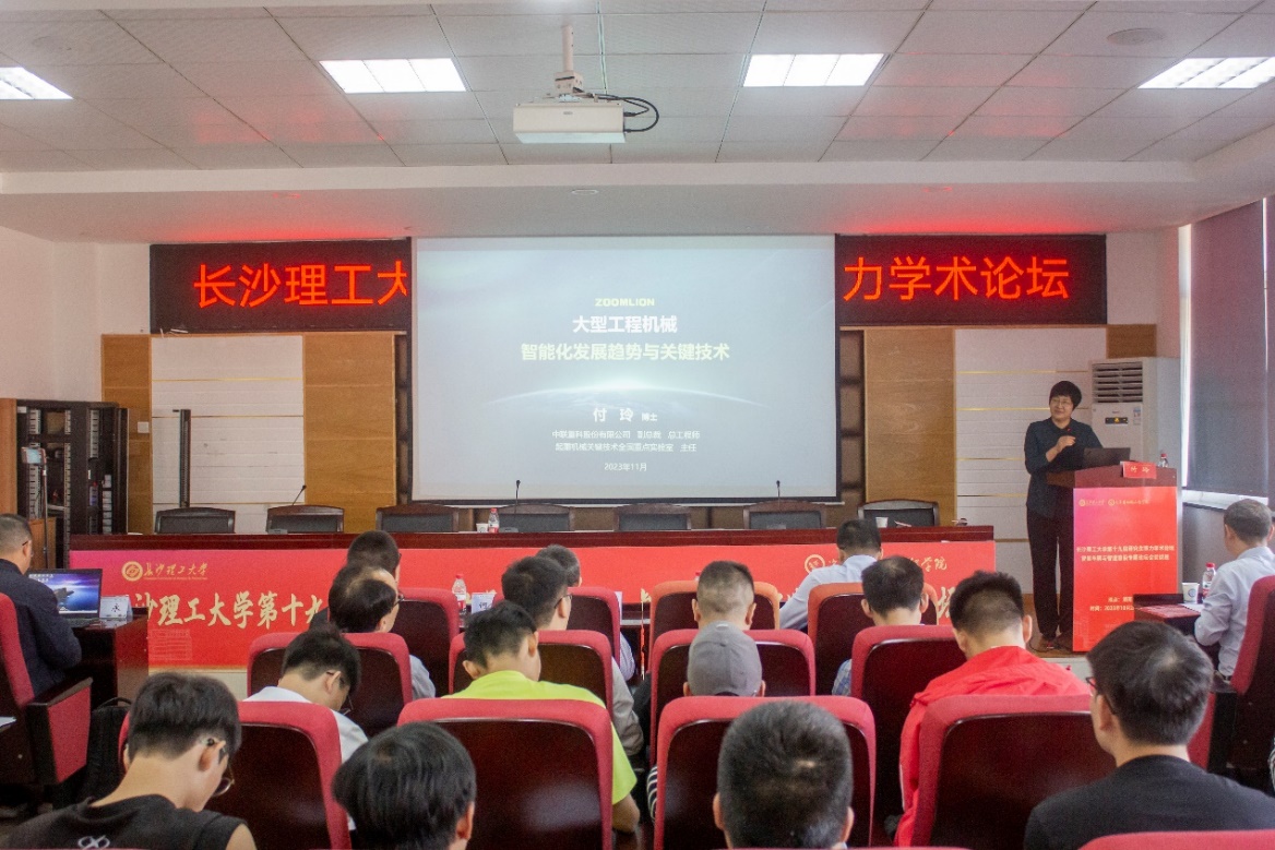 2023年11月1日,汽机学院特聘院长,国务院政府特殊津贴专家,中联重科党委委员、副总裁兼总工程师,中国工程机械学会副理事长付玲博士出席XK星空第十九届研究生博力学术论坛——“智能车辆与智造前沿”专题论坛并作报告。本次报告由汽机学院副院长毛聪教授主持,副校长胡永乐、研究生院副院长(主持工作)何忠明、副院长(主持工作)胡林、副书记唐宏宾、副院长刘鑫以及学院相关教师、研究生及本科生参加了本次报告会。