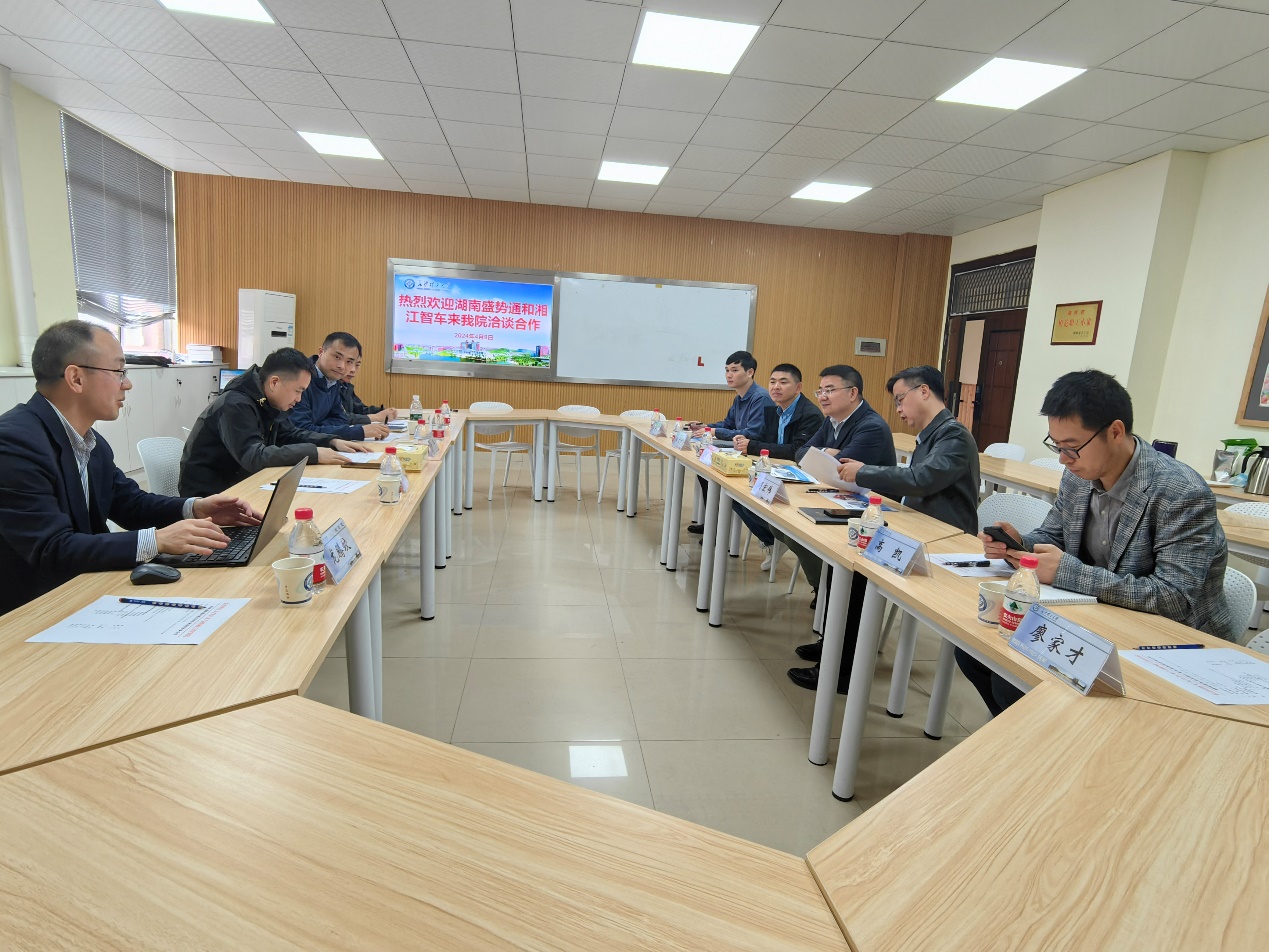 首先,胡林对两家企业的到来表示热烈的欢迎,介绍了学院科研工作的基本情况,以及成果转化、校企业合作的具体情况,表示可充分利用现有的科研团队资源,结合盛世通和湘江智车的企业需求,规划好合作模式,更好的为企业提供科研技术服务。唐军和李飞介绍了盛势通的业务方向及当前的校企合作需求。龙腾蛟介绍了湘江智车的业务方向及产学研合作的需求。