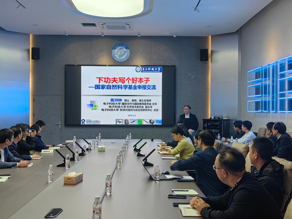 2025年11月6日,电子科技大学黄洪钟教授来我院进行国家自然科学基金申报专项讲座,学院党委书记孔伟红、副院长(主持工作)毛聪、党委副书记周小杰、副院长胡宏伟、唐宏宾以及学院青年老师参加了讲座,讲座由胡宏伟主持。