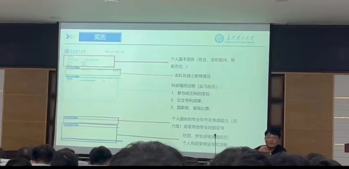 此次就业经验分享会中,首先是冯世成展示了自己的简历,并详细地向同学们介绍了简历的制作中的关键步骤,在根据自己求职过程中的经验和方法,从考公、考编和企业招聘三个方面着重展开介绍,为有考公考编意向的同学做了很好的指导。卢浩根据自身的一个求职经历,介绍了整个求职过程中的一些关键时间点,需要同学们把握这些求职过程中的关键时间点,再重点讲解了简历的制作和面试过程中公司所看重的东西,如何在简历中突出自己的求职优势。紧接着吴霖滔向同学们介绍了面临毕业就业时的几个比较关键的选择,像参军、军队文职、读博、就业和考公考编,希望同学们能够根据自己的优点和长处选择自己合适的方向和目标,并以此来努力。最后谷子逸向大家分享了自己的求职经历,他强调签约时要注意签约的特殊条款,并在结束时祝愿同学们找到心仪的工作。