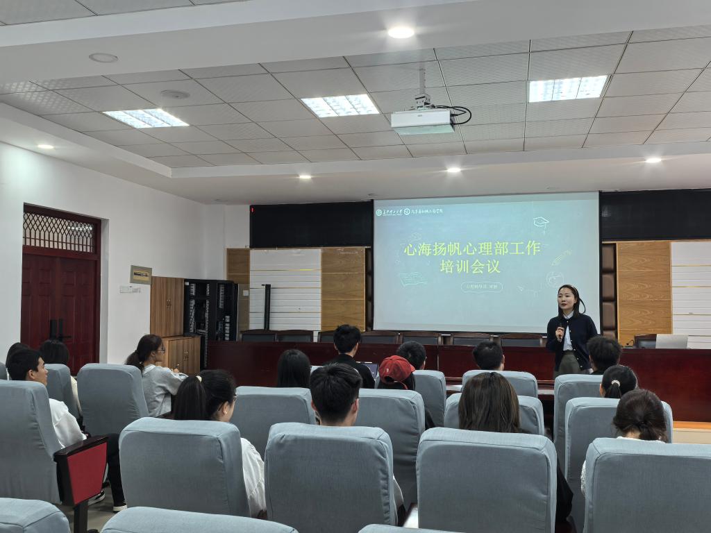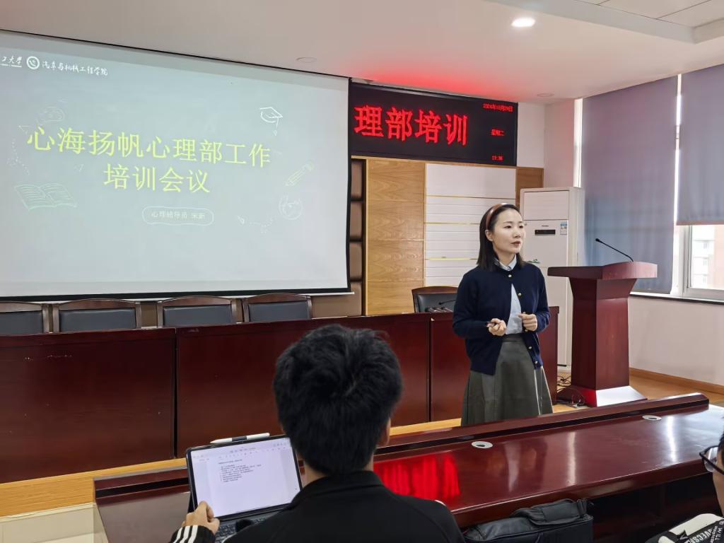 汽机学院为进一步推进学院心理健康教育工作开展,强化心海扬帆心理部工作能力,2024年10月29日中午,学院心海扬帆心理部在工科一号楼B417组织开展专题培训。本次培训会议由学院心理辅导员宋新主持召开。