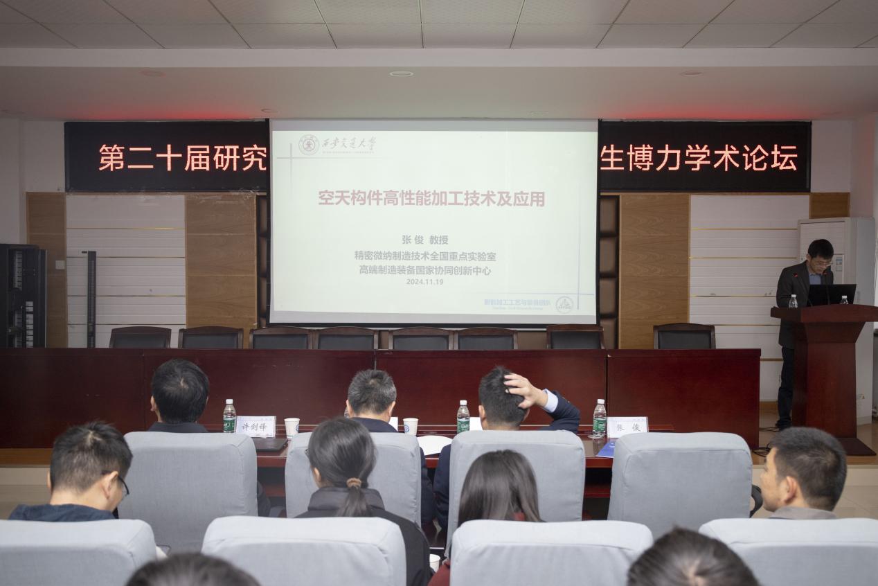 11月19日上午,汽机学院于工科一号楼B417举办了第二十届研究生博力学术论坛——“空天复杂构件高性能加工技术及应用”主题讲座。此次讲座邀请了西安交通大学先进制造技术研究所所长、长江学者特聘教授张俊教授担任主讲人,学校党委委员、副校长胡永乐出席并致辞。论坛由学院副院长毛聪主持,学院师生代表近200人听取报告。