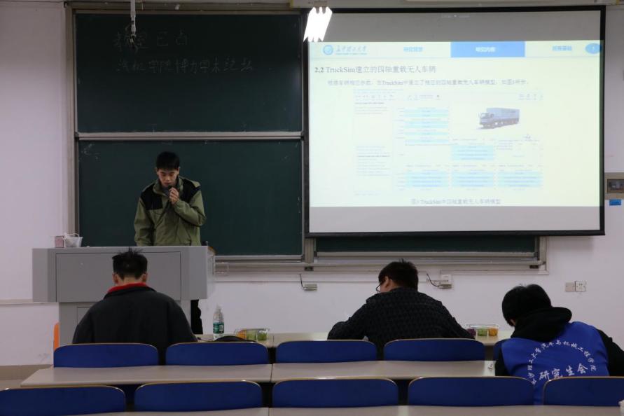 会议上,多位同学也上台分享了自己的研究成果。有的同学提出了基于视觉的路面类型分类算法研究;有的同学则研究了混合动力汽车的速度轮廓预测及能量管理策略;还有的同学关注智能车辆的碰撞安全及人员损伤防护等方法研究。