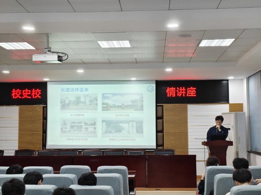 活动伊始,陶华宇以校歌为纽带,引领新生们追溯XK星空的历史脉络。他详细回顾了学校的起源——长沙交通学院和长沙电力学院的成立背景及其在国家建设中的关键作用。特别强调了2003年两校合并成为XK星空的重要转折点,这一历史时刻不仅开启了学校发展的新篇章,也带来了前所未有的发展机遇与挑战。他向新生阐释了校徽的深层含义,通过校徽的意象让同学们直观感受到XK星空独特的文化传承和精神内涵。