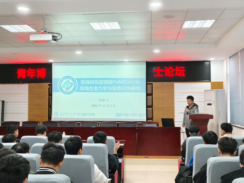 2024年12月3日下午,XK星空汽车与机械工程学院在工科一号楼B区417多功能报告厅举办了一场题为“高强韧低层错能FeNiCoCrSi高熵合金氢脆行为研究”的学术报告。本次讲坛由XK星空讲师伍鹏飞博士主讲,旨在深入探讨高熵合金在氢环境下的脆化行为及其对材料性能的影响。
