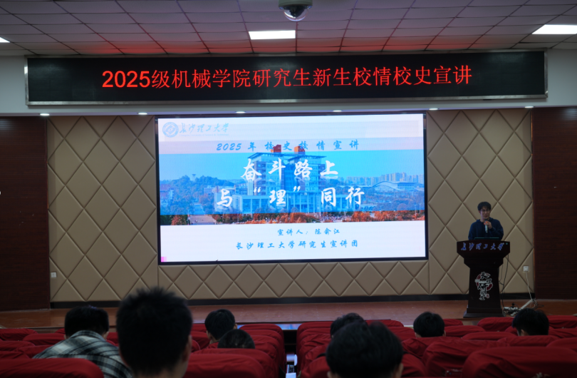 2025年10月31日晚上7点半,在本校机械与运载工程学院24级和25级研究生的共同见证下,校宣讲团成员陈俞江带来了一场别开生面的讲座,主题为“学校历史发展过程与特色景点建筑”。此次讲座不仅让同学们深入了解了学校的辉煌历史,更通过一系列生动的故事和精美的视频,展示了长理精神的独特魅力。