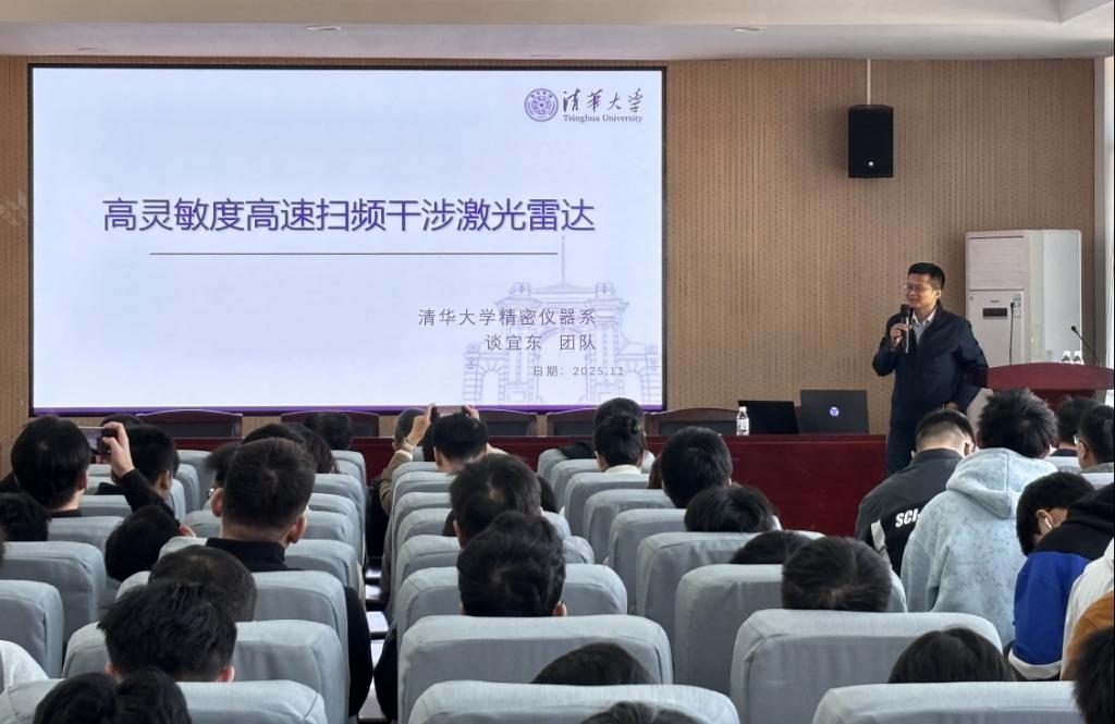 谭秋林教授以“极端环境下特种传感器及测量仪器”为主题,系统阐述了该领域的七大核心技术方向,并重点介绍了弹箭航天用瞬态高温力学MEMS传感器、红外光学气体传感器的最新研发进展。他强调,“极端环境下力热多参数动态原位测试”是国家重大战略需求,亟需攻克原位感知与溯源校准等技术瓶颈,并现场与师生就技术难题及应用场景展开互动答疑。