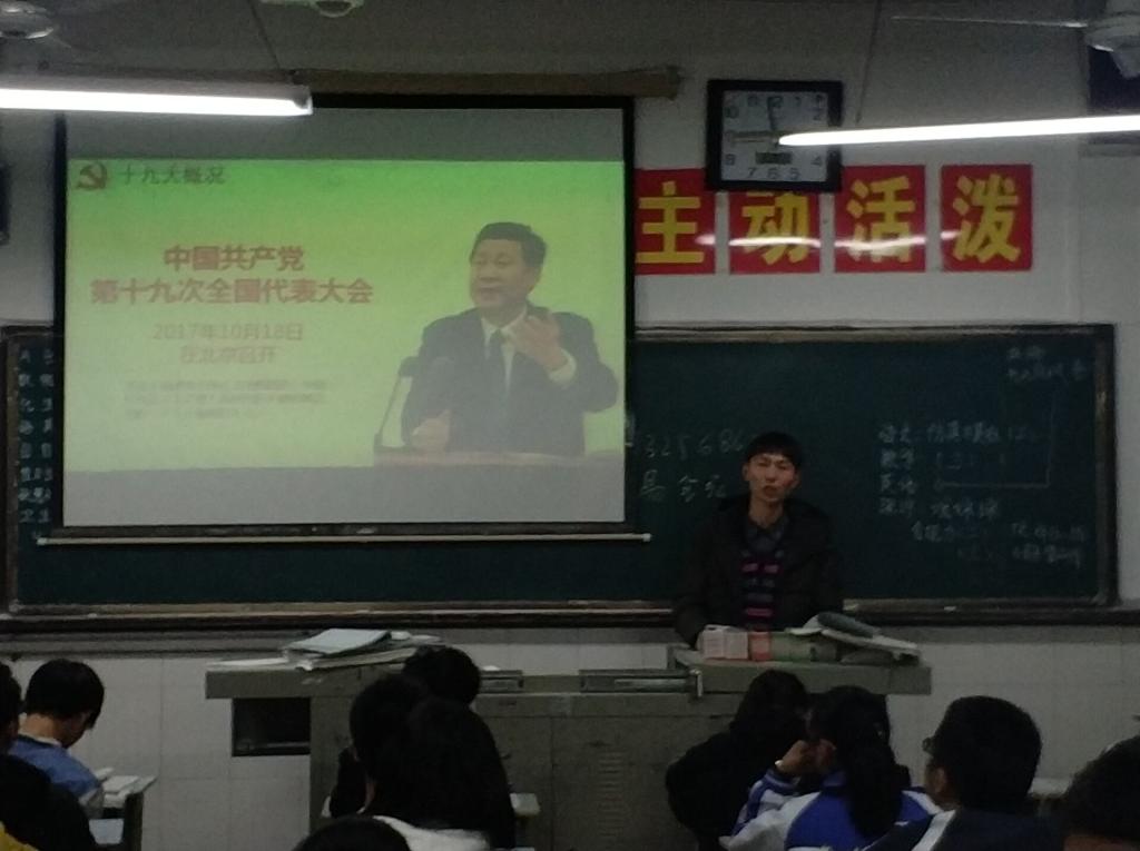 当学生四支部党员车辆1503班王良旭与高中班主任联系时,老师感到十分高兴与自豪,但同时也让他压力倍增。PPT的制作加工、宣讲内容、以及时间的把控、现场的设备等每个细节他都不敢掉以轻心。从内心的激动到行动上的一丝不苟,当一段精简版的《辉煌中国》在夹杂着高三学弟学妹们紧张的学习氛围下缓缓播出时,学生们以及他的心中涌现出来的自豪和骄傲却是“巨浪滔天”。他们从视频中看到祖国的辉煌蓬勃,看到新时代、新征程下的中国梦。