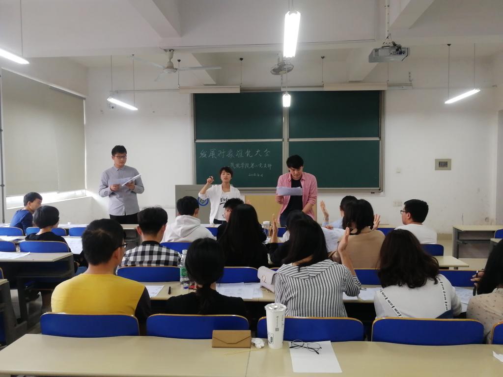 4月11日中午,汽机学院学生各党支部优秀团员推选大会在工一B区教室顺利召开。会议由各支部副书记主持,学院党委书记邱国良、副书记靳攀科、全体党员和各支部发展对象候选人参加了会议。
