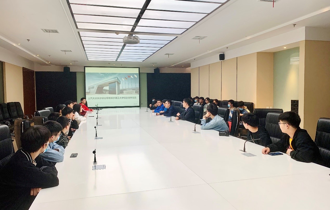 接下来,同学们在大众会议室与上汽大众的校友交流,上汽大众人力资源部曹振,XK星空2018届校友刘博夫、李忠伟参与了交流。交流会上,刘博夫学长从上汽大众长沙工厂的介绍、在上汽大众工作三年的感受和个人学习成长的经验分享等方面与学弟学妹们交流,并寄语大家,牢记母校铺路石精神,锐意进取,不负青春,做勇敢追梦的少年。