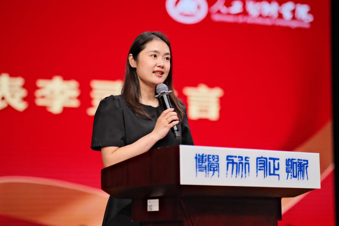 教师代表李灵以过来人和老师的双重身份,结合自身的求学经历和成长心路分享感受。她希望同学们要学会自主管理时间,对学术怀有敬畏心,脚踏实地,谱写属于自己的青春乐章
