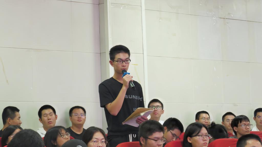 互动问答环节,同学们踊跃提问,现场气氛热烈。朱正发老师就同学们提出的竞赛知识体系的搭建、校赛选拔流程、指导老师的联系途径实验场地及设施申请等疑问给予了详尽而实用的解答
