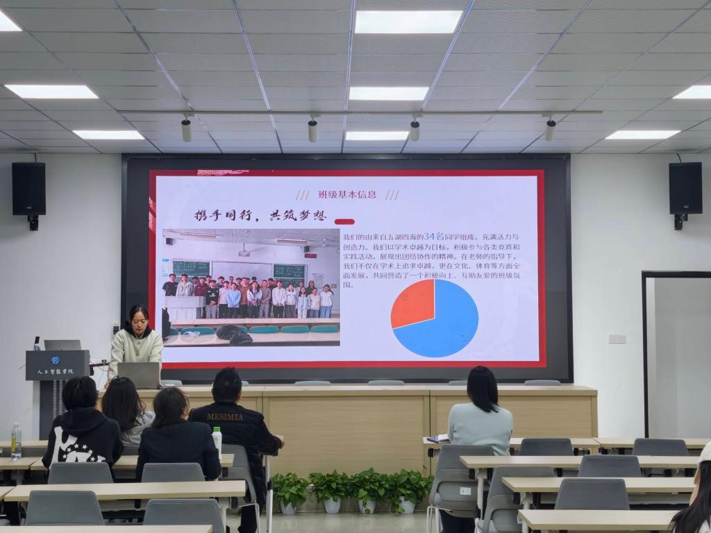 本次答辩会设班级汇报、评委提问和改进建议三个环节。各班级代表围绕班级概况、党团建设、学习情况、课余活动、实践竞赛、未来展望六个维度,展示了先进班集体的创建成果。各年级班级特色鲜明:低年级展现团结奋进的班风,中年级在学科竞赛方面表现突出,高年级则体现出学术水平与志愿服务并重的综合素养。经过评委综合评议,三个班级均顺利通过验收,获评院级先进班集体。其中,人工智能2202班凭借扎实的创建成果和鲜明的班级特色,被推荐至学校参评校级先进班集体和校级示范班集体。