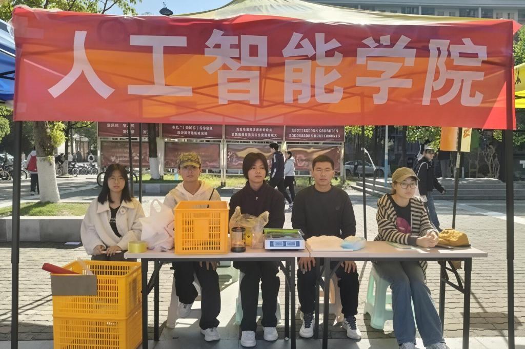 汀香园食堂门口的“人工智能学院摊位”成为校园里的一道温暖风景。我院志愿者分工协作,补给、打包、销售井然有序。首日砂糖橘两小时售出大半,全天售出近百斤。志愿者现卖现补、严控品质,师生踊跃购买、线上订单及时配送,共同助力我院在大赛中取得佳绩。
