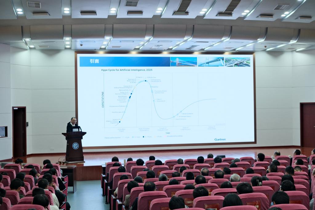 报告中,孙冬泳教授从AI大模型的基本原理、多智能体系统构建、AI赋能基础设施数字化以及智慧巡检等关键方向展开,系统阐述了其团队在多模态技术研发、数据融合与工程化落地方面的前沿进展。他结合团队在交通运输部主导的新疆、重庆、广东等地开展的数字化试点项目,以及在全国超300万公里公路网络中的规模化应用实例,生动呈现了人工智能技术对道路交通行业智能化转型的推动力量。在互动环节,师生围绕多模态数据融合的实际挑战”“大模型在垂直行业适配性等议题积极提问,孙冬泳教授结合其丰富的产业实践经验与科研积累,作出了深入浅出的回应,并鼓励同学们夯实理论基础、重视工程实践,在真实场景中锤炼解决复杂问题的能力。