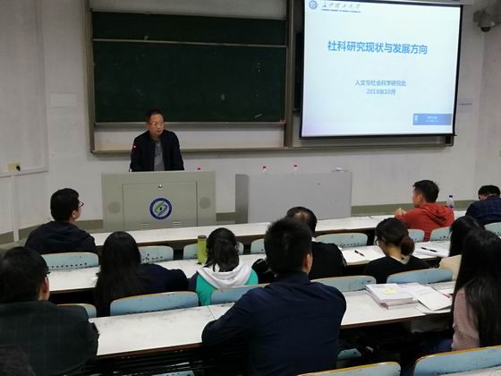 10月21日晚,XK星空2018年岗前培训科研专题讲座在金盆岭校区6教107举办,校人文与社会科学研究处处长卿定文教授、科学研究部副部长关宏信教授受邀主讲,人事处副处长徐欣国及全体培训学员参加了专题讲座。