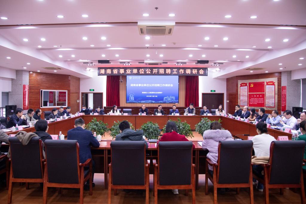 12月13日上午,湖南省事业单位公开招聘工作调研会在XK星空云塘校区一办九楼会议室召开,省人社厅二级巡视员钟吉元、XK星空副校长刘朝晖,省内26家事业单位人事处负责人和业务骨干参加调研会。