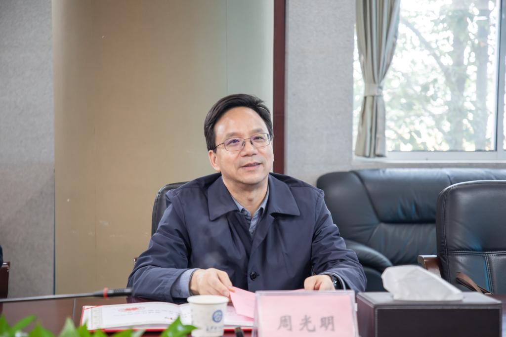 刘朝晖对周光明一行的到来表示热烈欢迎,并衷心感谢省人社厅长期以来对XK星空人事人才工作的关心与支持。他简要介绍了XK星空建设发展成就和面临的挑战,并希望在省人社厅的大力支持下,进一步发挥学校学科、人才等资源优势,助推湖南经济社会高质量发展。
