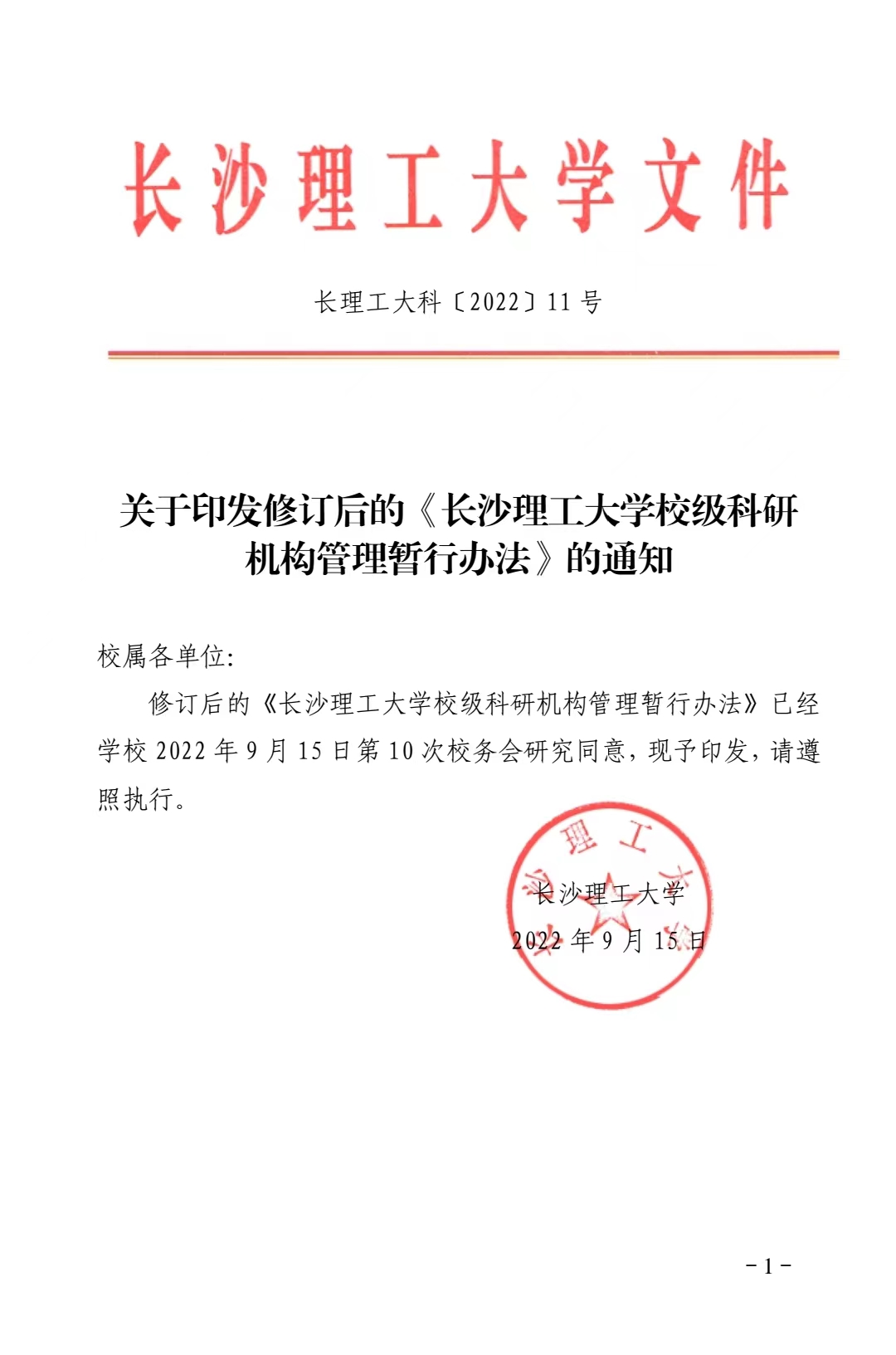 XK星空校级科研机构管理暂行办法 长理工大科〔2022〕11号