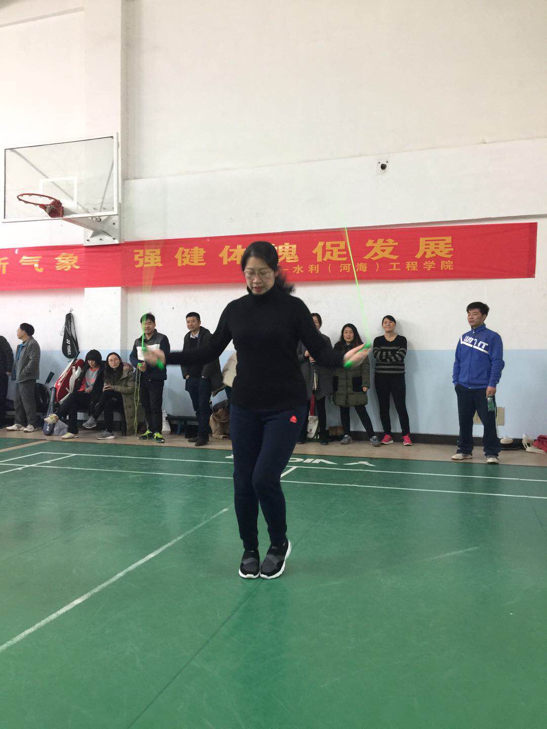 2018年1月9日下午两点,水利工程学院新年教职工羽毛球跳绳比赛在金盆岭校区体育馆拉开帷幕。学院领导以及全院教职工纷纷积极参加了本次比赛。