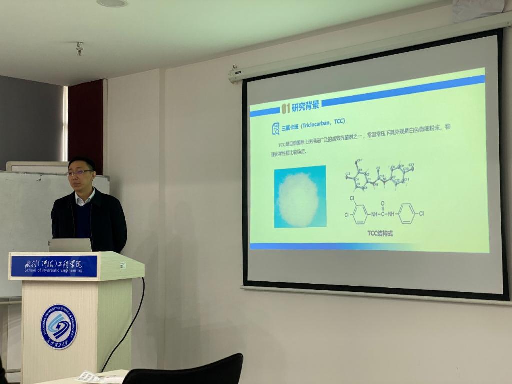王冬波向与会师生介绍了我国作为三氯卡班生产和消费大国,近年来在不同河流中均检测到三氯卡班存在;在污水处理厂上游河流中三氯卡班检测率大约为50%,而污水处理厂下游河流中却能100%检测。硝化作用是污水生物脱氮的起始步骤,三氯卡班对污泥硝化菌的影响关系及机制仍不明确。由此提出了创新的研究思路,考察了TCC在污泥硝化系统中的去除效率,通过质量平衡证实了TCC被污泥去除是由吸附作用主导行为;进而采用长期连续实验探究了不同浓度的TCC短期和长期暴露对污泥硝化系统性能及硝化微生物的影响规律及机制。该研究成果发表在国际权威期刊《Water Research(2020, 178, 11585)》(IF 2019 = 9.13)上。此次讲座为XK星空师生开阔了学术视野,对于提升大家学术水平进而激发创新思想和勇于探索未知欲起到了积极效果;同时加强了省内高校之间的学术交流,有利于促进形成更加良好的学术氛围。