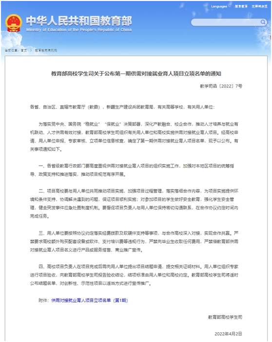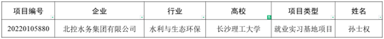 近日,教育部高校学生司下发《教育部高校学生司关于公布第一期供需对接就业育人项目立项名单的通知》(教学司函〔2022〕7号)文件,公布了全国第一期供需对接就业育人项目名单,我院孙士权副教授牵头主持的《北控水务集团—XK星空智慧水务就业实习基地项目》(编号:20220105880)成功获批。