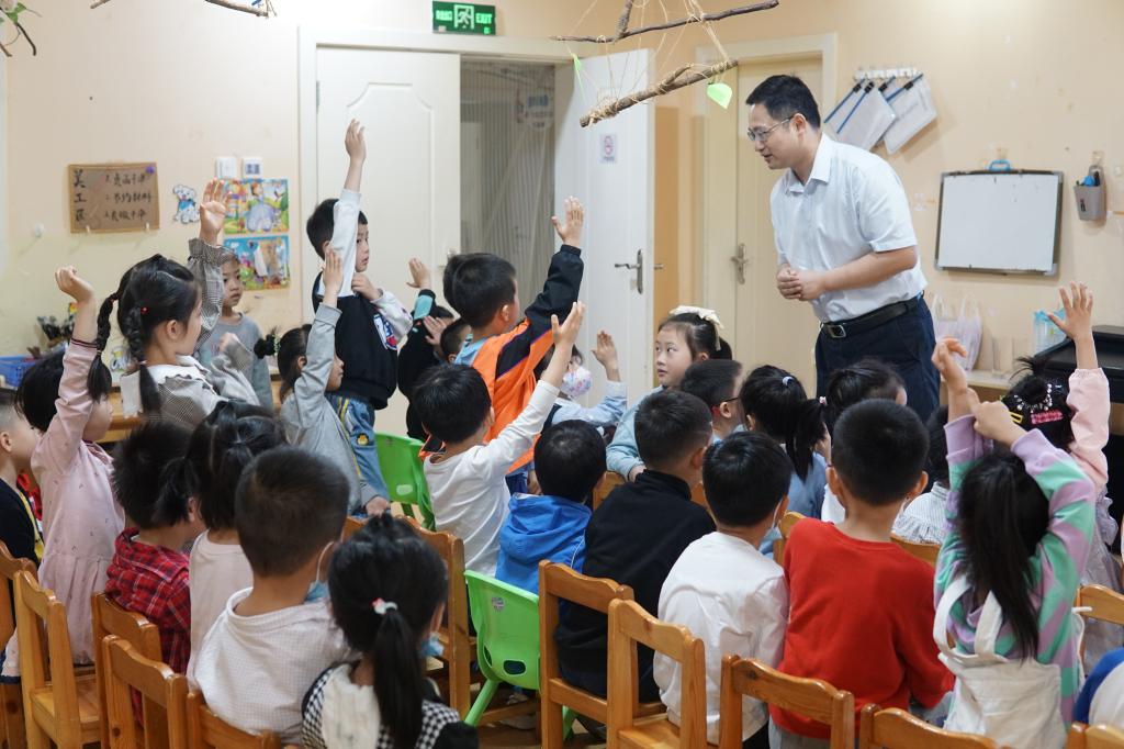 “小朋友们,这杯水颜色和味道有没有变化呀?”、“我们可以通过什么方式知道这些呢?”首先,陈杰从“一滴水”引入,以图片的形式,从生活入手,简单介绍了水的重要性以及基本特性等基础知识,小朋友了解到水在生活中必不可少,水资源对于人类来说极其重要。在问到如何节约用水时,小朋友们纷纷踊跃举手发言,显示出对水知识的浓厚兴趣。现场还通过邀请小朋友对比在水中放入泡腾片前后饮用水的变化,让小朋友形成水的基本特性的初步认识。