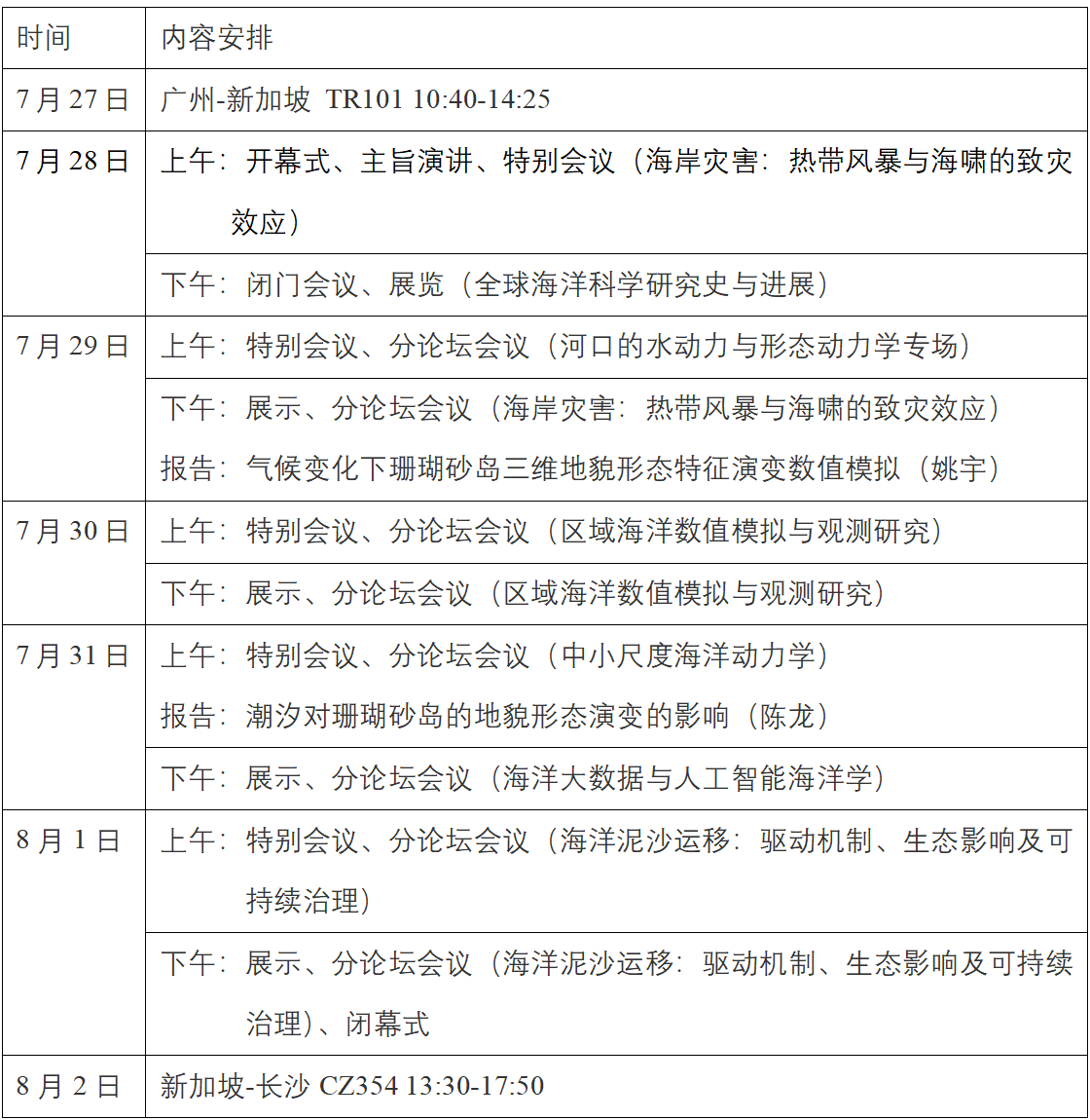 本次出访为期7天,由XK星空水利与海洋工程学院船舶与海洋工程专业负责人姚宇教授,陈龙副教授组成代表团,赴新加坡参与亚太大洋洲地球科学学术大会,按原计划完成出访任务回国,本次出访过程中完成了预定的工作任务。行程涵盖开幕式、主旨演讲、专题分论坛、闭门研讨及学术展览等多元活动,聚焦海岸灾害、海洋数值模拟、珊瑚岛礁演变、人工智能海洋学等前沿议题,深化了国际学术合作与科研交流。