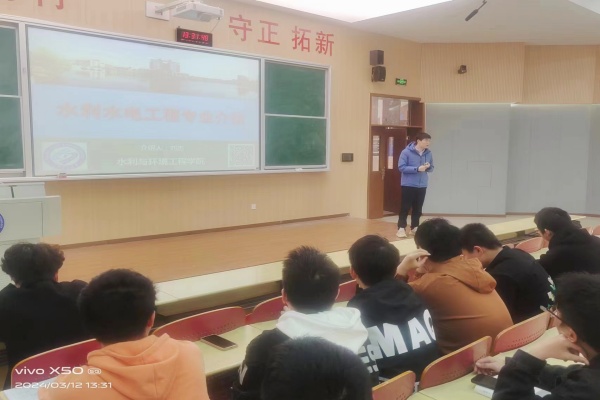 3月12日,水电系党员教师为水利类大一新生开展了生动的专业认知教育。活动中,党员教师刘杰结合水利水电工程专业的历史沿革、发展现状以及未来趋势,向新生们详细介绍了专业的基本情况。党员教师们还就新生们普遍关心的课程设置、就业前景等问题进行了耐心细致的解答。