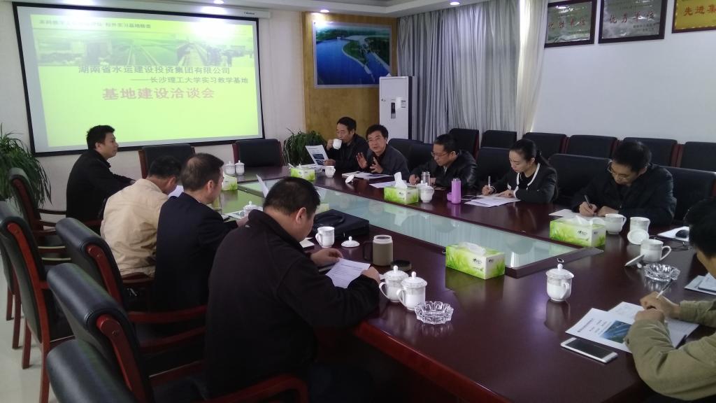 随后在项目部会议室,校企双方召开了XK星空实习教学基地建设洽谈会。胡永乐首先介绍了学校的基本情况,以及此行的目的。陈杰代表学院做了实习教学基地建设及实习教学工作汇报,介绍了校企双方在在本科教学实习、人才培养、科研合作、本科教材编写、本科实验教学、本科毕业设计、本科生创新能力培养方面取得的丰富成果。湖南省水运建设投资集团有限公司徐国兵副总经理简要回顾了从1993年开始的基地建设历史,以及双方在产学研方面的合作情况。最后喻玲娜、贺跃光、蒋中明与基地共同商议了本科教学工作审核评估株洲航电枢纽校外实习基地检查、实习基地建设等相关事宜。