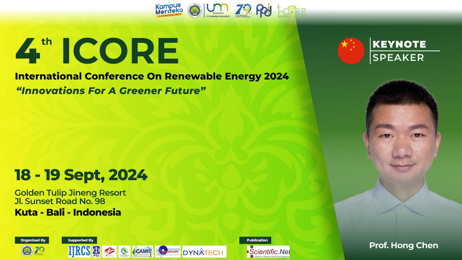 2024年9月18~19日,水利与环境工程学院陈宏教授课题组在线参加了国际会议The 4th International Conference on Renewable Energy (4th I-CoRE)。该会议在印度尼西亚举行,旨在探究可再生能源技术、可持续实践和创新解决方案。会议由Universitas Negeri Malang(玛琅国立大学)承办,共有来自印度尼西亚、马来西亚、英国、中国等多个国家的数百名科学家和学者同行及研究生参加。