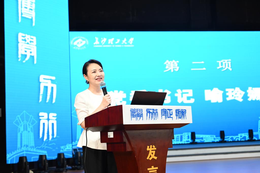 活动伊始,喻玲娜热烈欢迎新生加入学院大家庭,充分肯定军训中展现的“不畏艰难、意志如磐”品质。她寄语新生以“智守江河绿”的追求涵养胸襟,以“积水成渊”的坚持锤炼本领,以“心系家国”的情怀勇担使命,做全面发展、本领过硬、矢志报国的水利人。