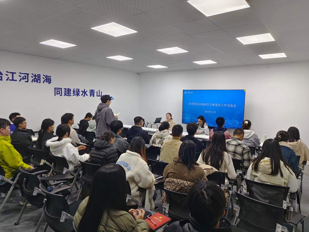 11月20日,水利学院在“大禹之子”一站式育人社区召开2025级新生下班党员工作交流会。会议由2025级新生辅导员王正博、王祎主持,全体新生下班党员参会,旨在总结阶段性工作成效、凝聚协同育人共识。