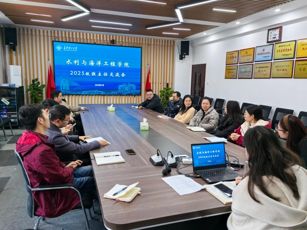 1月13日,水利学院在新能源楼1栋420会议室召开2025级班主任工作交流会。会议聚焦2025级学生转专业意向调研、期末总结班会组织安排及新生心理个案干预三项重点工作,开展深入研讨。学工办主任綦丽、年级辅导员王正博、王祎及2025级班主任出席会议。会议由2025级辅导员王祎主持。