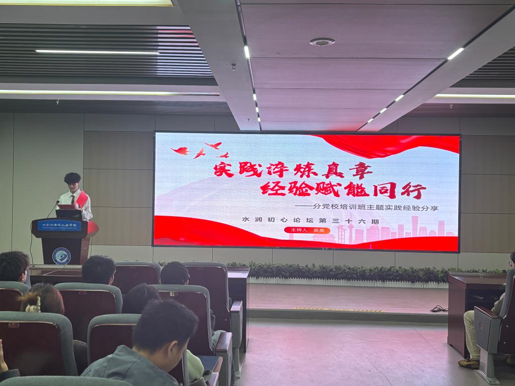 12月11日晚,水利学院第三十六期“水润初心”学习论坛在新能源一栋二楼会议室顺利举行。本期论坛以“实践淬炼真章,经验赋能同行”为主题,由本科生第二党支部吴昊同志主持,吸引了50余名学生积极参与。