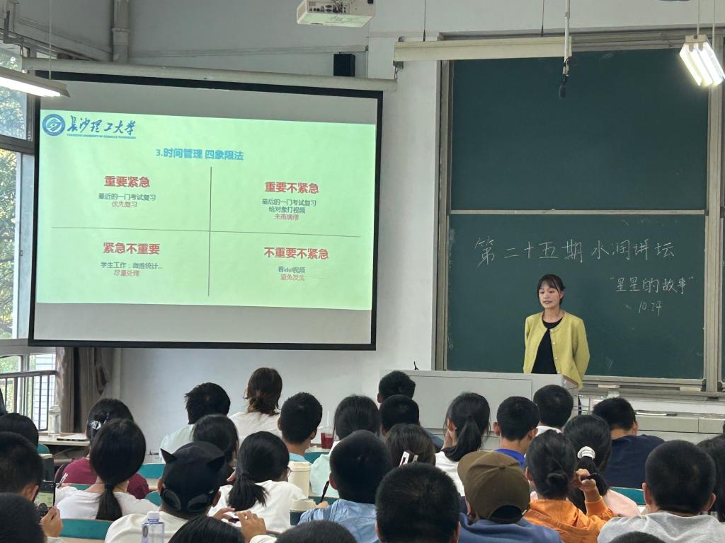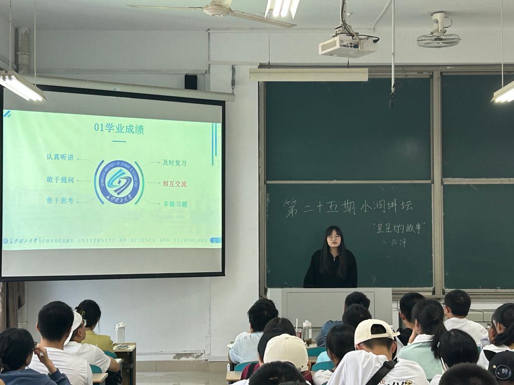10月24日,水利学院在云塘工科三号楼A205室举办第25期“水润讲坛”,主题为“学霸养成记-星星的故事”。本次讲坛由保研优秀代表孟熙、国家奖学金获得者周希雅、三好学生标兵肖娴姿三位同学主讲,与80余名大一新生共谈如何更好地在大学阶段的学习上创造自我价值。