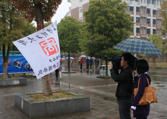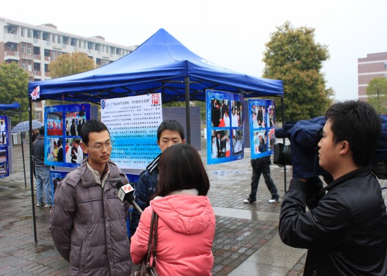 4月7日上午,由大禹之子和环保志愿者协会共同举办的“保护母亲河,我们在行动”校园大型宣传活动在汀香园门口展开。此次活动以关注湘江为主题,通过漫画展览,悬挂展牌等形式向同学们介绍社团环保历程,传播环保理念,并号召大家积极投身于保护母亲河的行列当中。活动引起了同学们的广泛关注,同时受到了湖南教育电视台的跟踪报道。