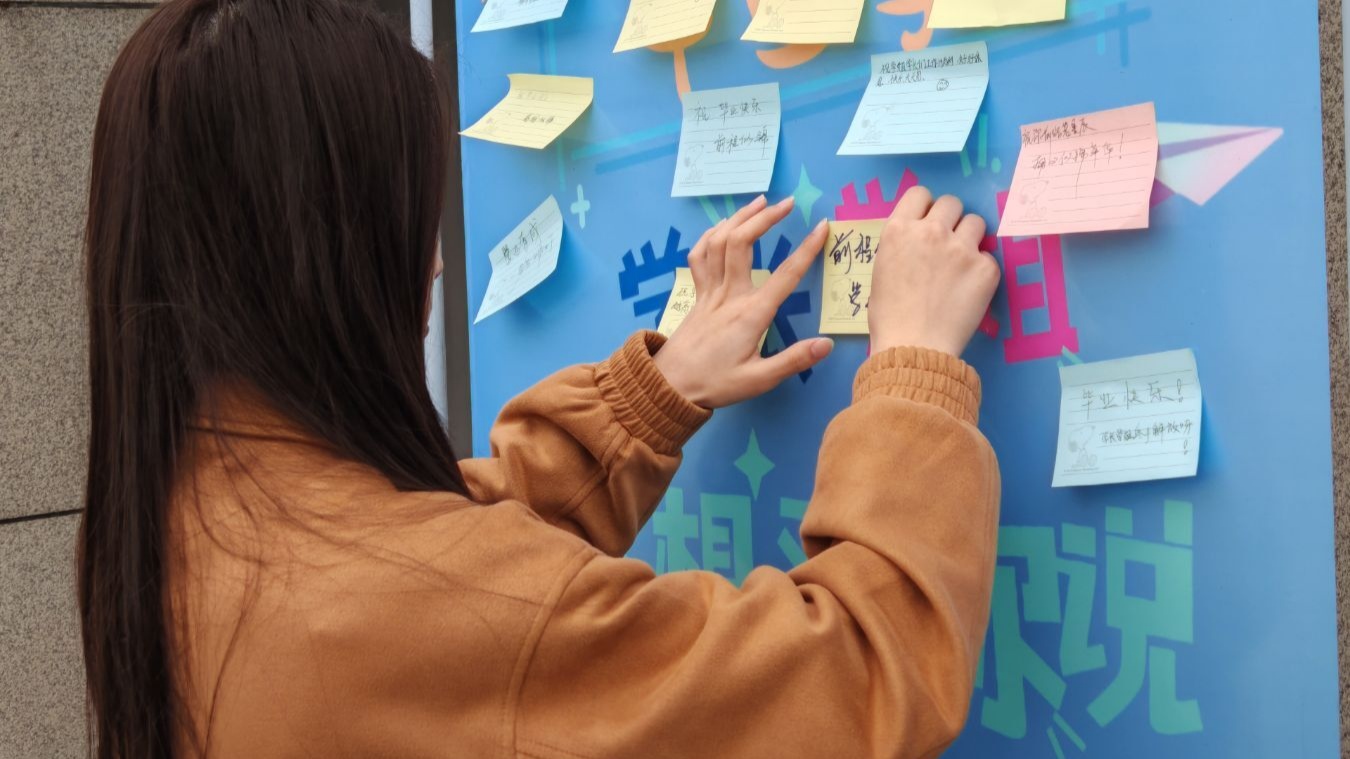 此次活动以新颖而又温馨的形式展开,学弟学妹们将自己想对马上毕业的学长学姐们的感激和美好祝愿一一写在了便利贴上,随后将其细致地贴在精心设计的易拉宝上。这些话语不仅传达了学弟学妹对学长学姐们过去的无私奉献与热切关心的感激,更加饱含了对学长学姐们美好前程的祝福。