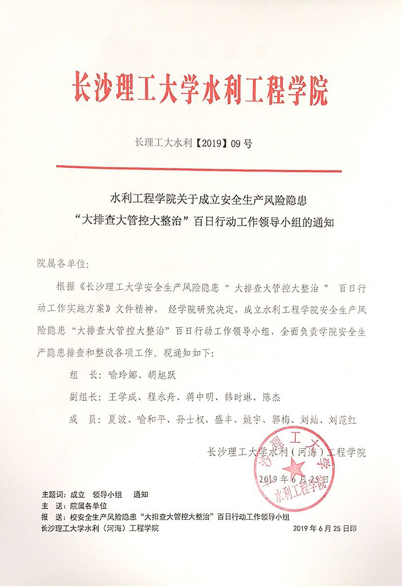 水利工程学院关于成立安全生产风险隐患“大排查大管控大整治”百日行动工作领导小组的通知
