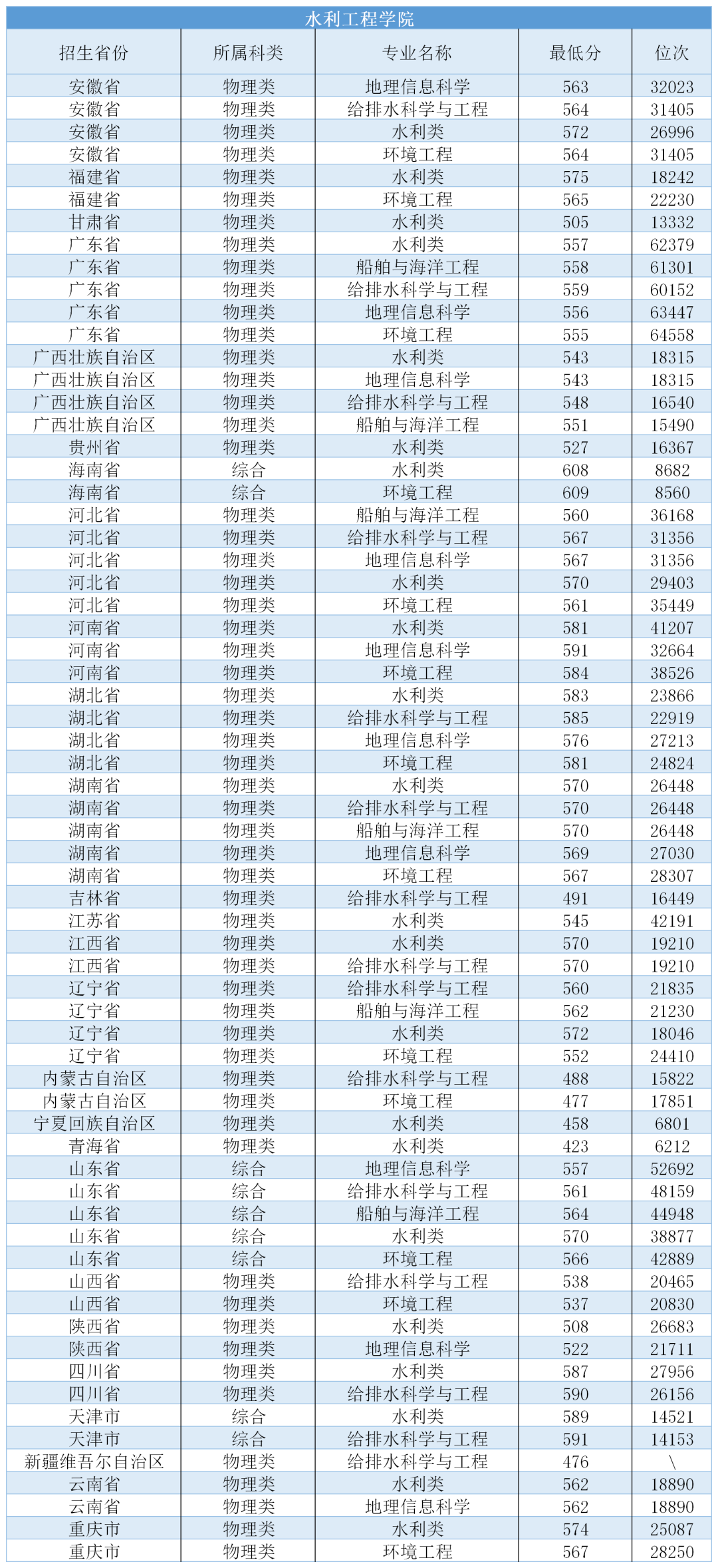 水利水电工程专业:1956年开始办学,先后入选国家级一流本科专业建设点、首批湖南省一流本科专业建设点、湖南省特色专业、教育部卓越工程师培养计划,已通过国家工程教育专业认证,2021软科中国大学专业排名第14,2022年校友会中国大学排名位列水利类一流专业排名第18。