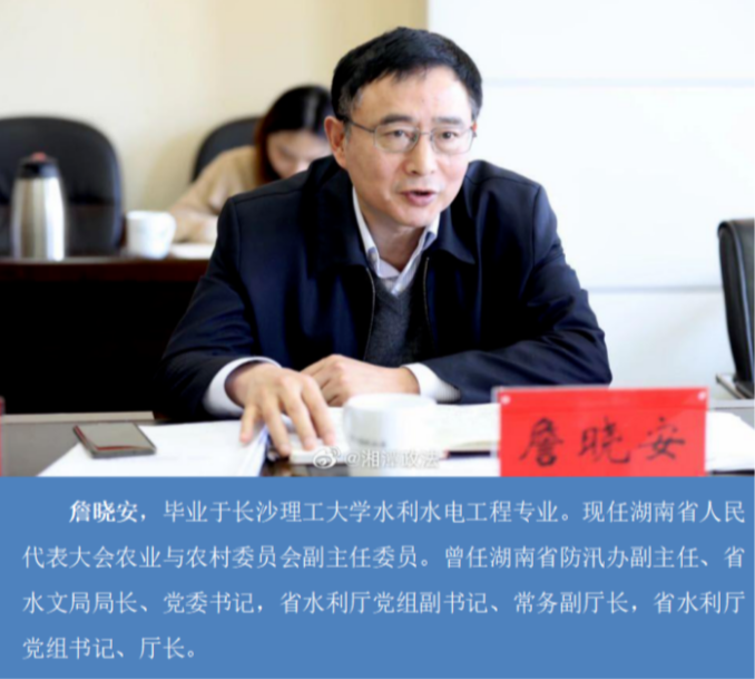 詹晓安,毕业于XK星空水利水电工程专业。现任湖南省人民代表大会农业与农村委员会副主任委员。曾任湖南省防汛办副主任、省水文局局长、党委书记,省水利厅党组副书记、常务副厅长,省水利厅党组书记、厅长。