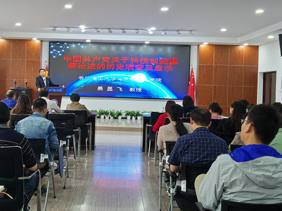 5月25日下午,水利工程学院在工三B319进行党史学习教育第三专题的主题宣讲。马克思主义学院党委书记易显飞教授以《中国共产党关于科技创新重要论述的历史演变及启示》为题,与水利学院全体教师分享科技工作者的责任与担当。