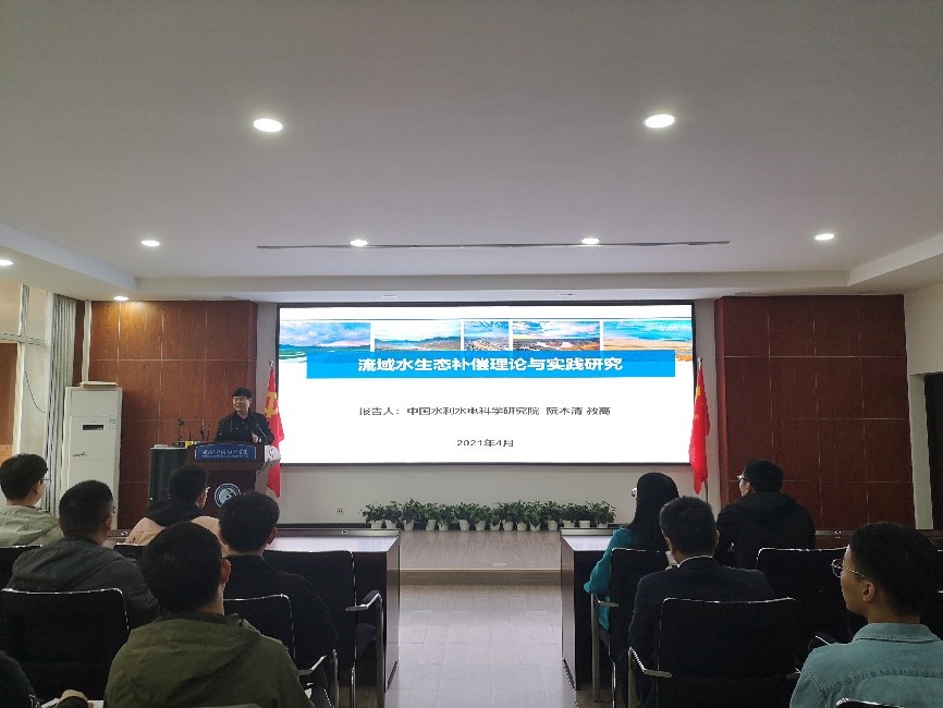 4月27日上午,我院洞庭湖水环境治理与生态修复湖南省重点实验室在XK星空云塘校区工三B319成功举办“走进洞庭”系列学术研讨会(第六场)。会议邀请到了来自中国水利水电科学研究院阮本清教授级高工,开展了题为“流域生态补偿理论与实践研究”的学术报告。学校相关老师及研究生、本科生共60余人参加了此次研讨会。