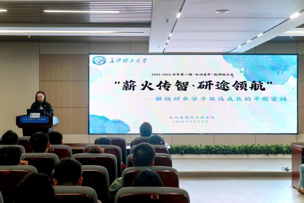 为进一步搭建专业教师与同学们之间学术交流与成长赋能的平台,帮助水利学子更好地规划学术生涯,12月3日晚,水利学院在云塘校区新能源大楼二楼开展“水润青年”教师微沙龙。本次活动以研究生生涯与专业成长为主题,由学院教师王新奎主讲,百名同学参加。活动由研究生辅导员杜丘主持。