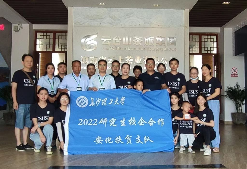 乡村振兴,产业兴旺是基础、是支撑,是解决“三农”一切问题的前提。传统乡村产业的振兴既需要有情怀、有能力的企业家的助力,又亟需理论与科技的支撑。因此实践团与湖南省高马山农业有限公司、湖南省阿香茶果食品有限公司、湖南省安化县云台山·云上茶业有限公司、安化云台山八角茶业有限公司、安化卧龙源茶业有限公司四家企业进行校地合作并举行授牌仪式。师生们与企业从茶叶的种植条件、生产标准、品种优育、产品销售、提高茶叶品质、优化加工工艺、寻找风味影响因素等方面进行专业性讨论和指导,积极探索以茶赋能推动脱贫攻坚同乡村振兴有效衔接的可行路径。